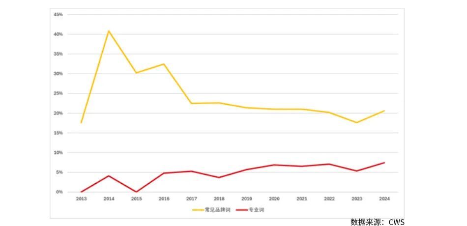 再者,市场热度与消费频次的提升,印证了消费者热情的增长。作为国内规模最大的威士忌专业展会,WhiskyL!自2009年创办至今已走过17年,从2018年以来,参展人数及品牌规模都在不断扩大,这本身就证明了市场的巨大热度和消费者的参与热情。而在即饮渠道,例如酒吧,通过对大众点评中威士忌酒吧评论的研究,我们发现“威士忌”一次的提及率从2013年开始一直呈现上升的趋势,而消费者在评价中对专业化用词的提及率也变得越来越高。