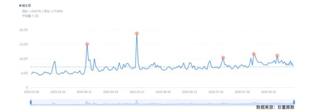 ▍巨量算数中威⼠忌指数近半年变化趋势