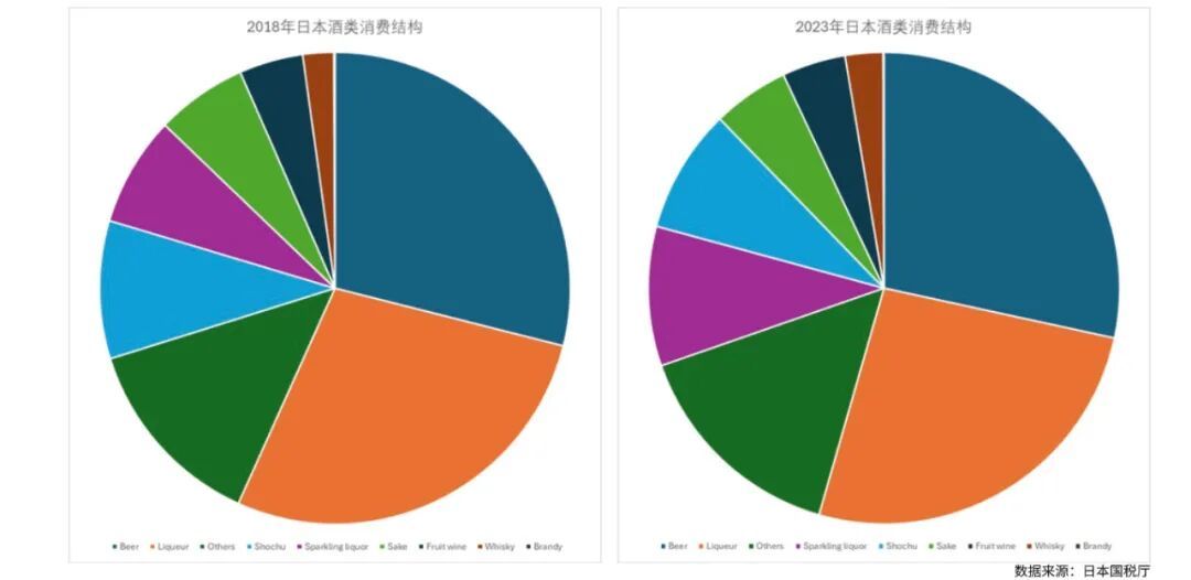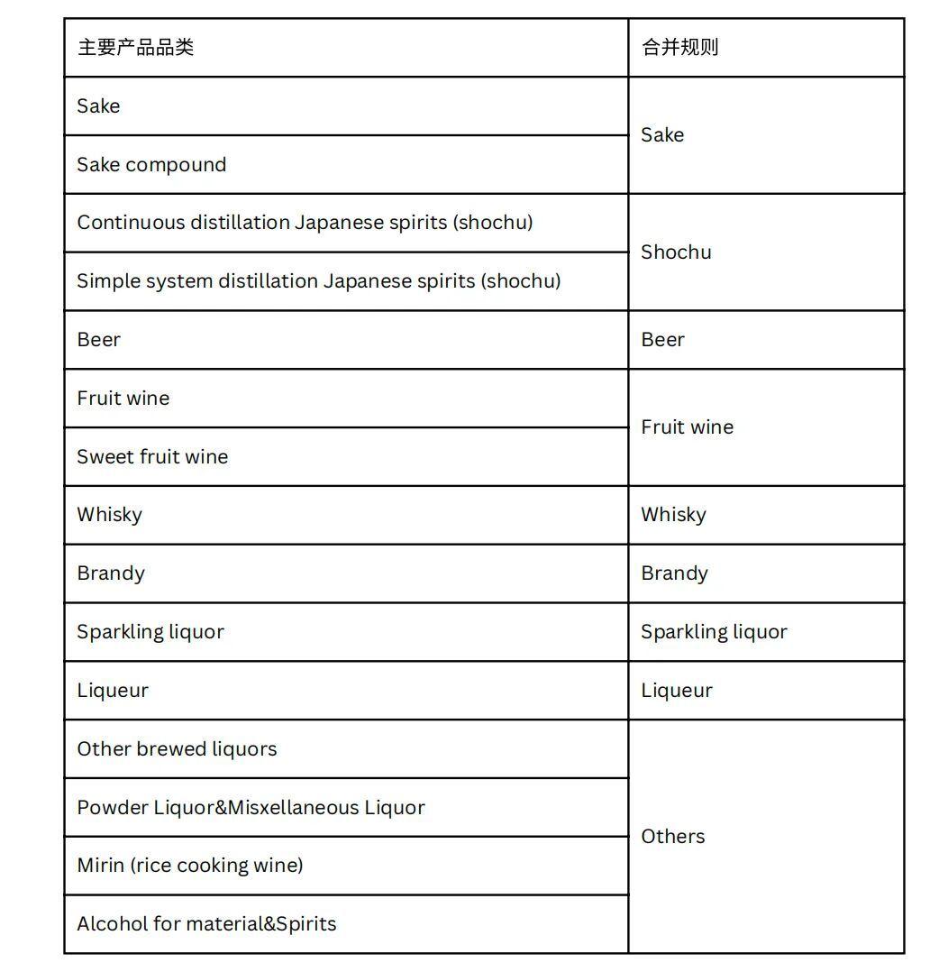 日本主要的酒精饮料类别如下,数据均来自日本国税厅。