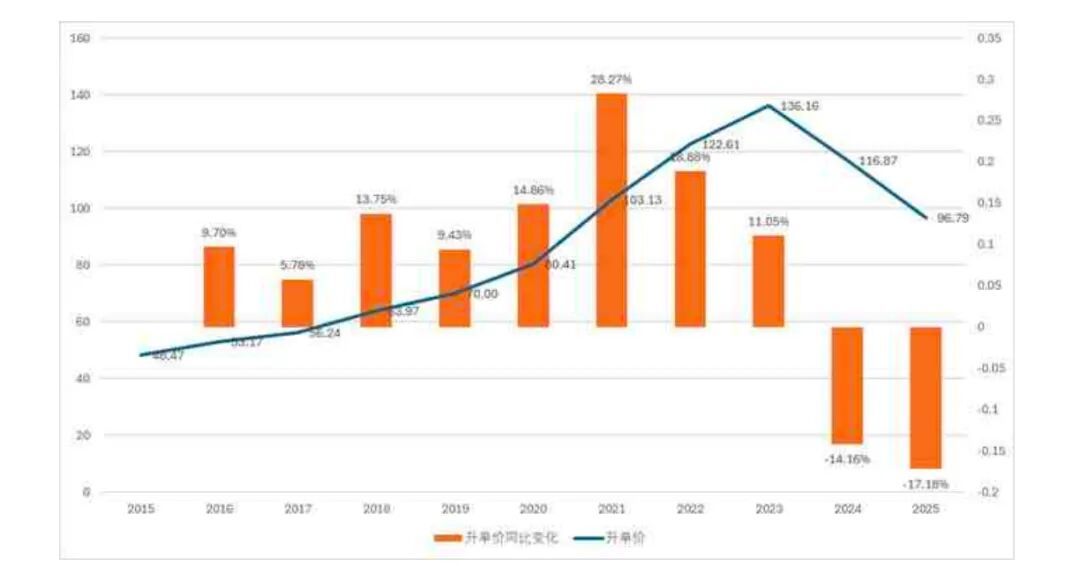 ▍近十年英国进口威士忌升单价及其变化趋势(数据来源:中国海关)
