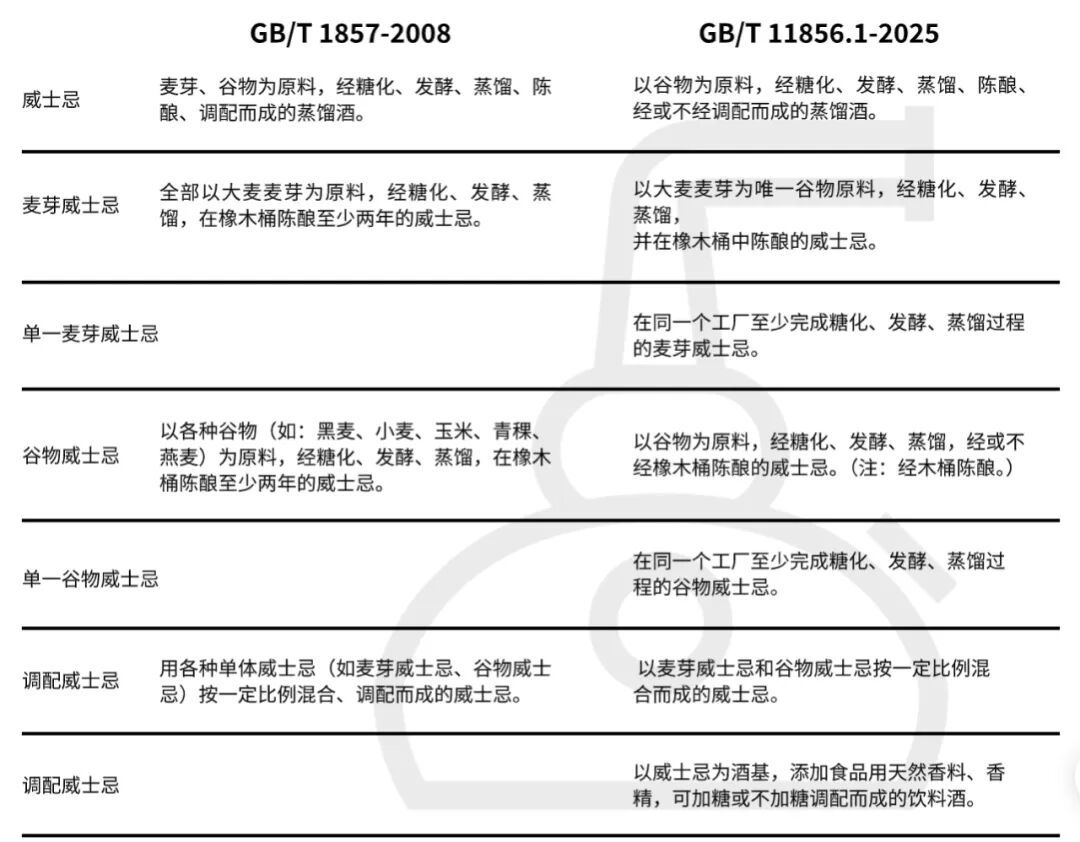 ▍中国威士忌国标新老对比