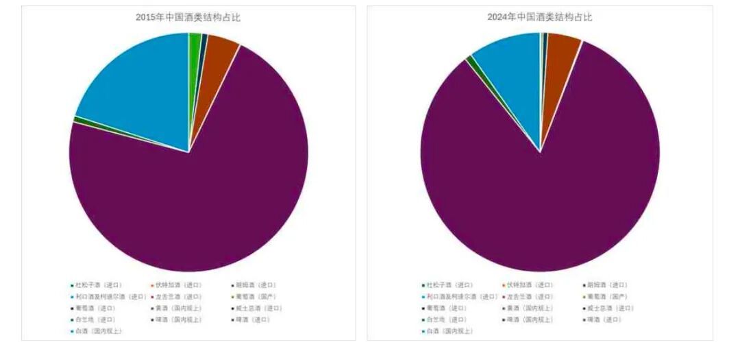 ▍中国酒类产能结构占比变化(数据来源:中国海关、中酒协)