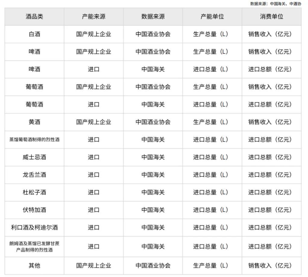 ▍中国主要酒精饮料类别信息