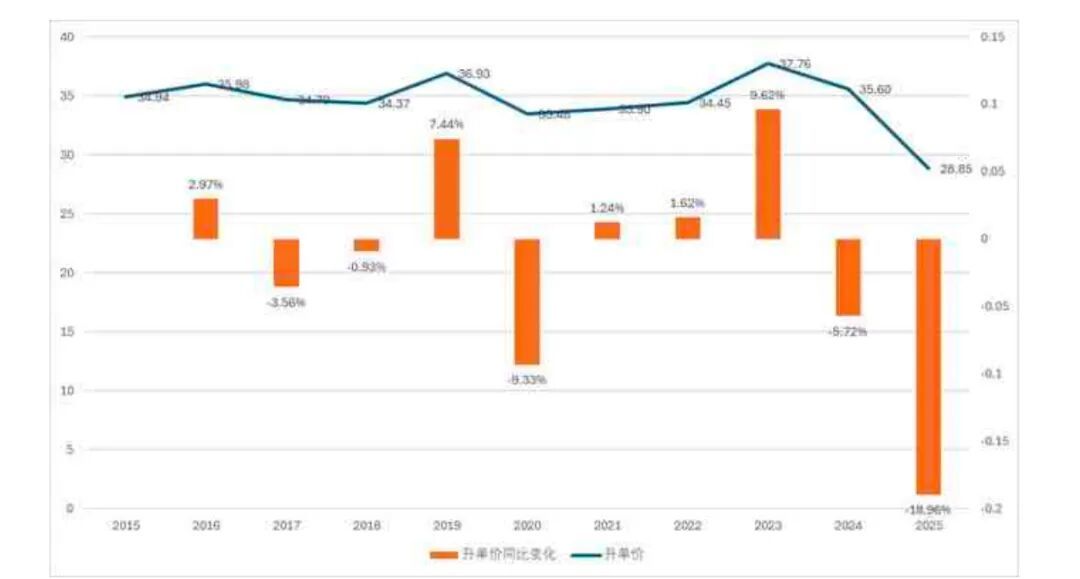 ▍近十年美国进口威士忌升单价及其变化趋势(数据来源:中国海关)