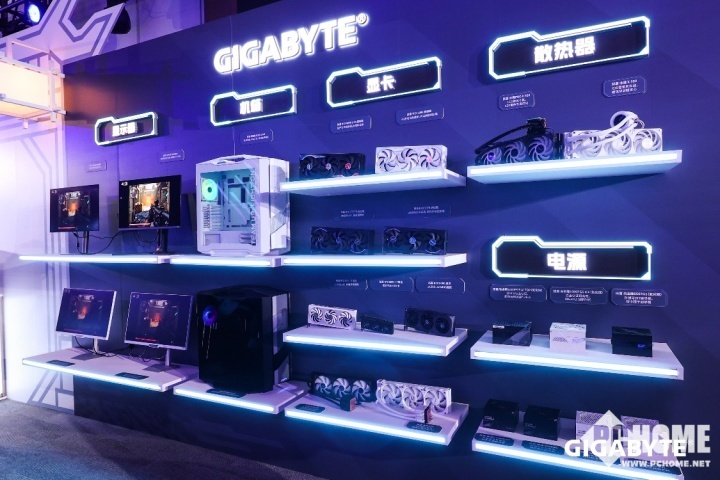 整场展区围绕六大主题展开,既有超频演示与新品体验,也有整机展示、AI计算方案与软件优化,全面展示了技嘉在性能、设计与体验层面的多维实力。