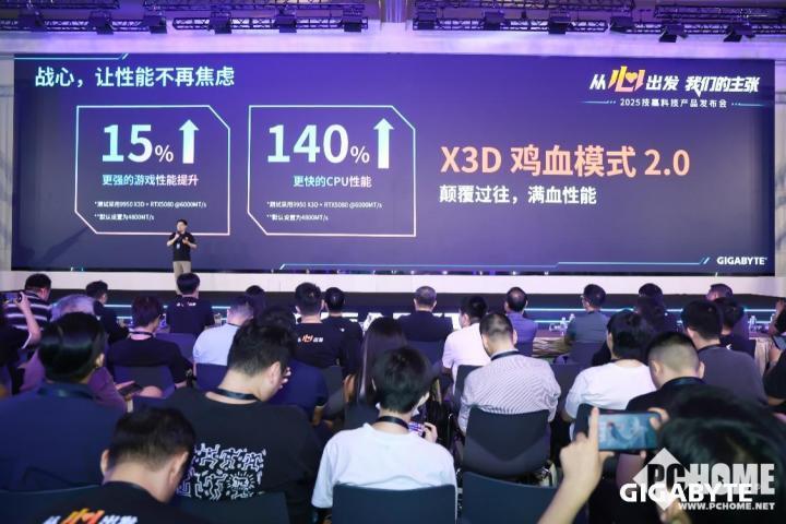 新品方面,基于AMD X870E芯片组X3D系列主板正式亮相,其中X870E AORUS MASTER X3D ICE“超级冰雕”凭借全白散热装甲成为全场焦点,支持DDR5内存稳定运行在 9000+MT/s 的超高频率,硬件表现处于行业领先水平。与此同时,全新X3D鸡血模式2.0 也在现场实测,能够智能识别不同负载场景并自动调校核心参数,CPU性能最高提升140%,游戏性能提升15%。