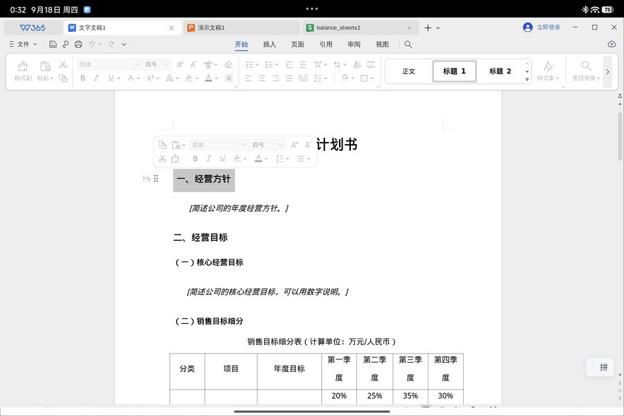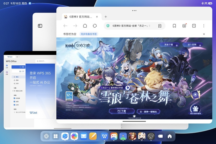此外,针对平板的大屏,澎湃OS 3系统还带来了PC级的应用与交互体验。比如内置的PC级WPS,在UI布局、交互体验上都与PC版高度一致。并且支持窗口多开,处理文档、表格、PPT都很方便,非常适合轻度办公。