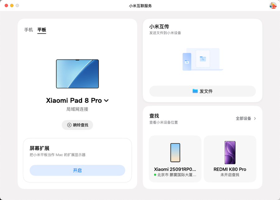 小米平板8系列还可以实现与PC、Mac之间的互联,尤其是对于苹果用户而言,只需要打开小米互联服务,就可以直接实现与小米手机之间的文件高速互传,非常方便。