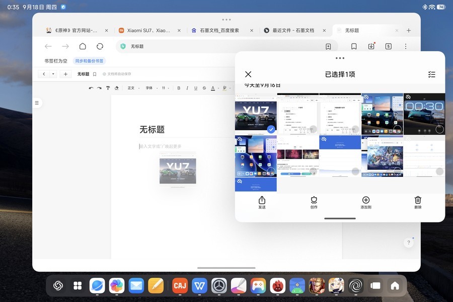 在工作台模式下,系统的交互体验也更接近PC,可以在小窗模式下运行多个应用,还能实现不同应用之间的文件的拖拽传输,有着很高的效率。