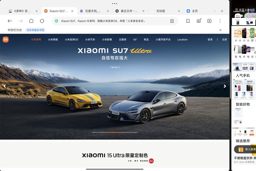 此外,小米平板8系列的分屏体验也做了新的升级,新加入了分屏快切功能,两个应用可以1:9分屏,点击即可快速切换,既不会影响主要使用应用的视野,又能快速调用另一个应用,刷剧的时候回个消息,填表的时候核对下信息等场景就很实用了。