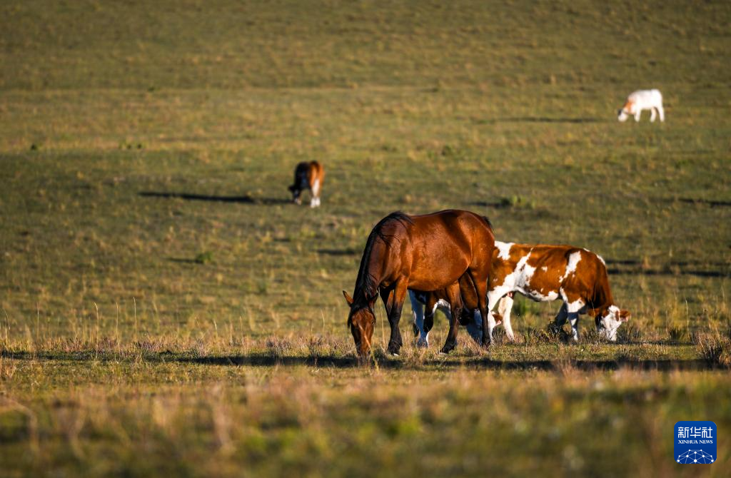 9月19日,畜群在草原上觅食。