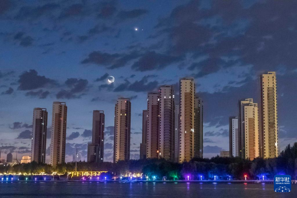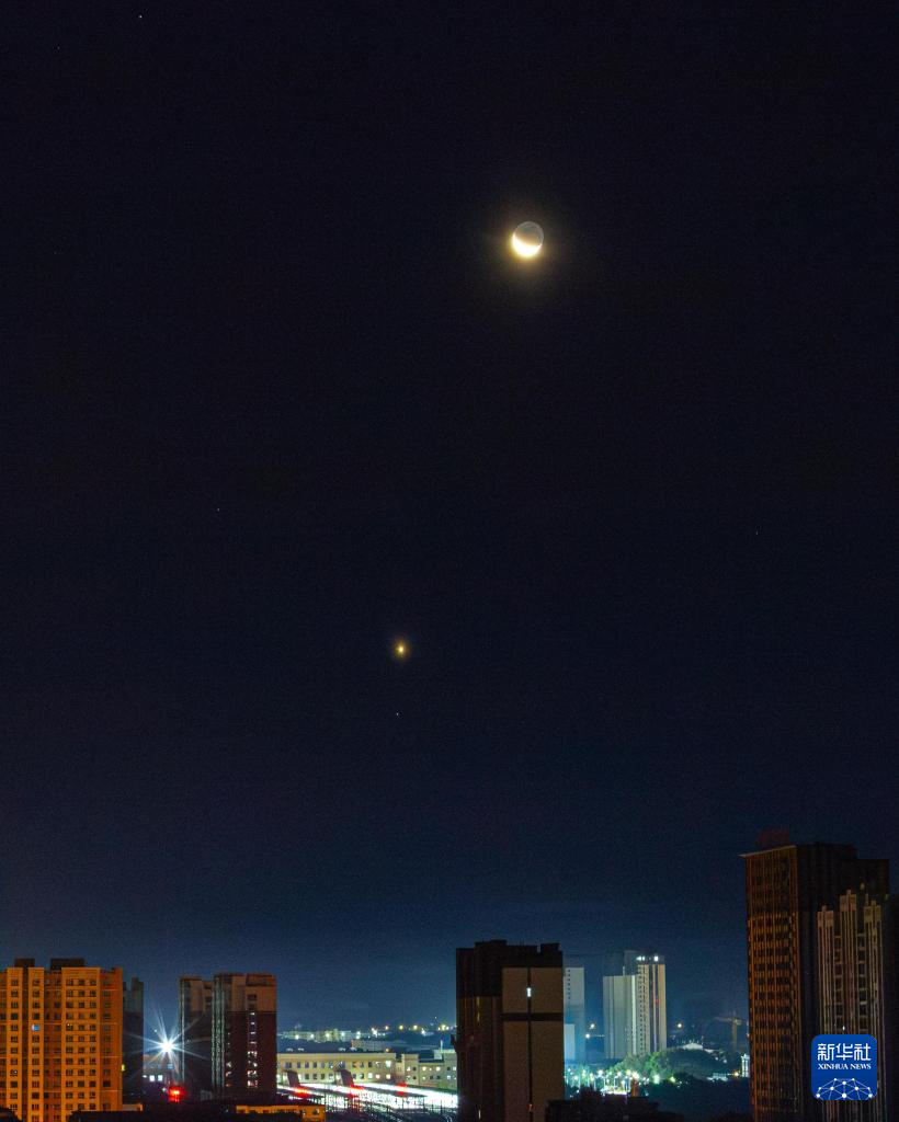 9月19日凌晨在黑龙江省佳木斯市拍摄的“双星伴月”。