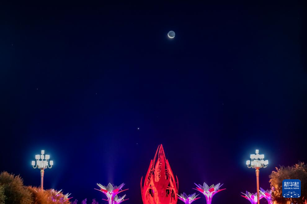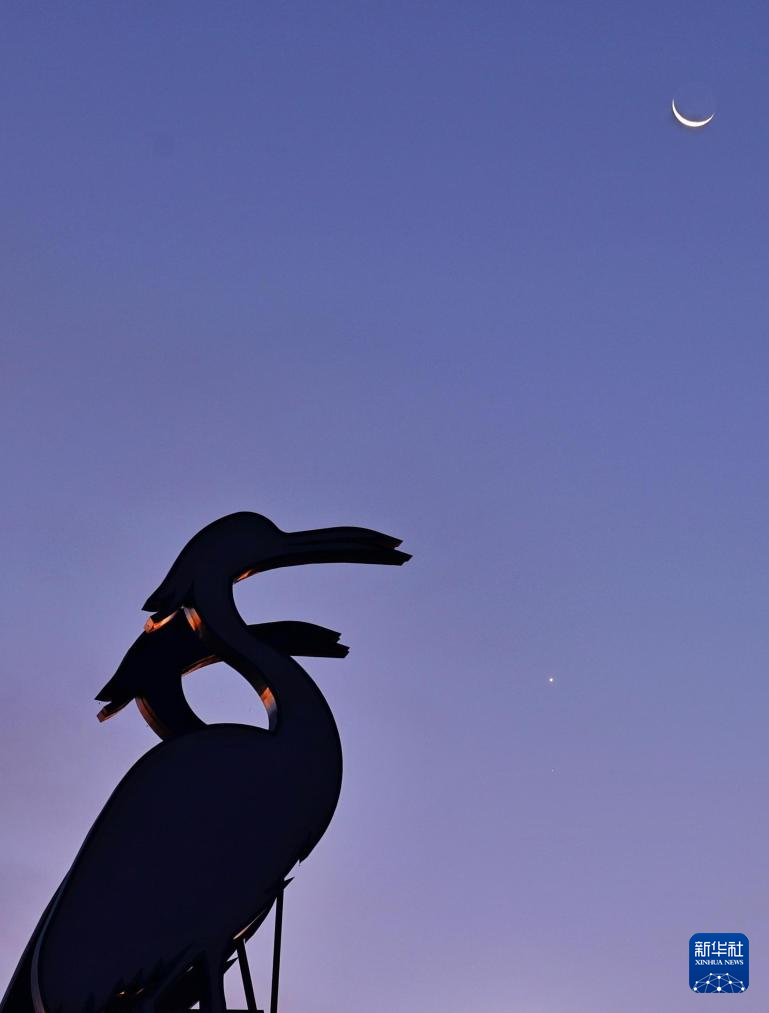 9月20日凌晨在黑龙江省齐齐哈尔市拍摄的“双星伴月”。