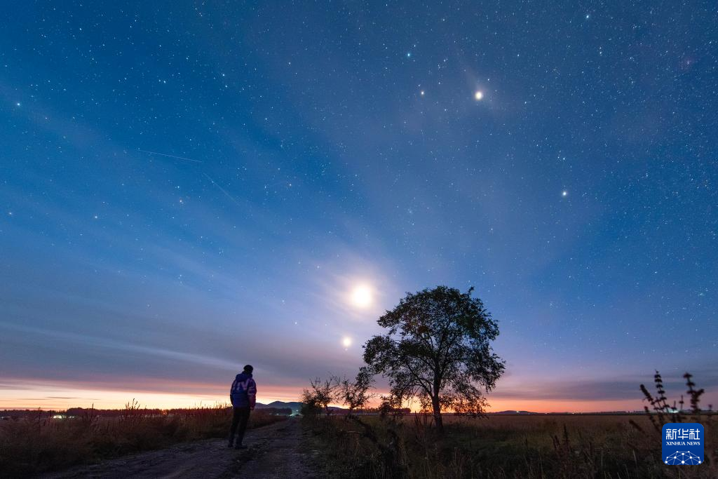 9月19日凌晨在黑龙江省佳木斯市富锦市拍摄的“双星伴月”。