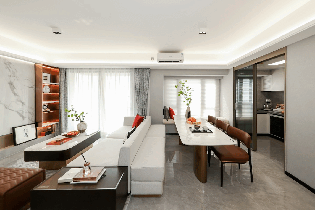 LDK一体化餐客厅,搭配景观阳台,在放大视野感受的同时,本身也是家庭公区的一部分,尺度感非常到位。