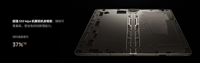 实现折叠核心的则是全新玄武水滴铰链。复杂的设计加上1900MPa的新火箭钢材料,实现屏幕悬停角度多且稳定。