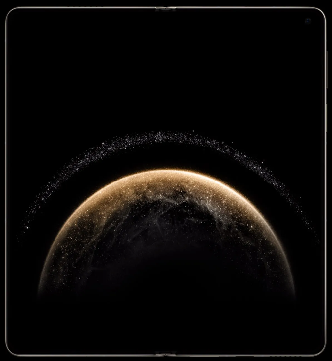 本次的摄像模组Deco以双星轨的形式呈现,更加促进了整机星云美感的迸发。而金色的金属边框,搭配屏幕四曲边的设计,则展示了什么叫华贵但不失优雅。