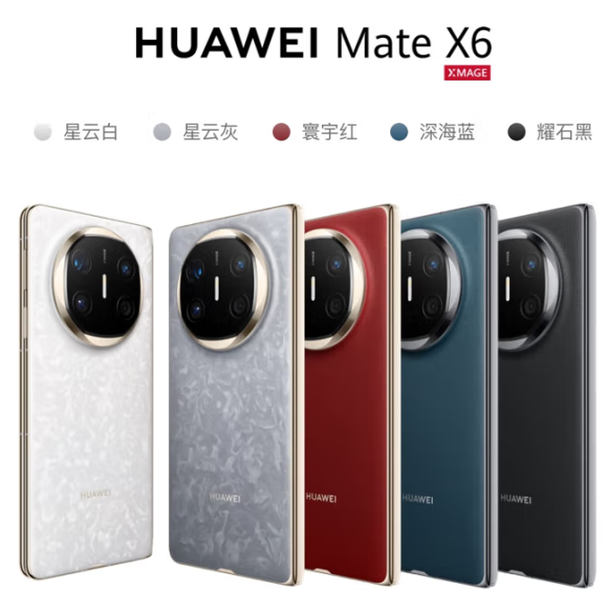 华为Mate X6提供了五种可选配色,分别是星云灰、星云白、曜石黑、寰宇红和深海蓝。如果说曜石黑、寰宇红和深海蓝传承了素皮外壳一直以来的典雅。那么星云灰、星云白创新的锦纤外壳,则以星云流转的姿态拓展了华为的产品美学。