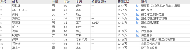 从公司的高管团队构成来看,德尔玛目前的管理层呈现年轻化特点,五位在职高管平均年龄为39岁,其中最年轻的副总蔡演强为董事长蔡铁强的弟弟。在薪酬方面,孙斐2024年年薪为94.65万元,较上年增长3.83万元,在四位副总经理中排名第三,低于Alex Rishoej的175.7万元和蔡演强的99.41万元。