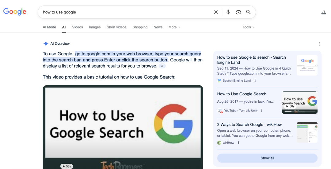 而对用户而言,这种“Google直接给答案”的模式可能确实节省了寻找信息的时间。但一个值得注意的趋势是:越来越多的用户在获取AI总结后就此止步,既不点开,也不深挖——AI不仅在回答问题,也可能在悄然压缩用户的探索半径。