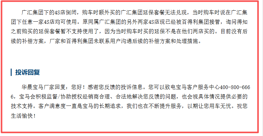 “即便4S店倒闭,厂家也有兜底责任。万一发生经济赔偿,宝马是要先行赔偿消费者损失,再向违规门店追偿”。他建议宝马尽快对相关涉事车主开展问卷调查,列明4S店可能存在的违规情况并进行纠正。“目前来看,宝马在门店管理上明显失位了。”