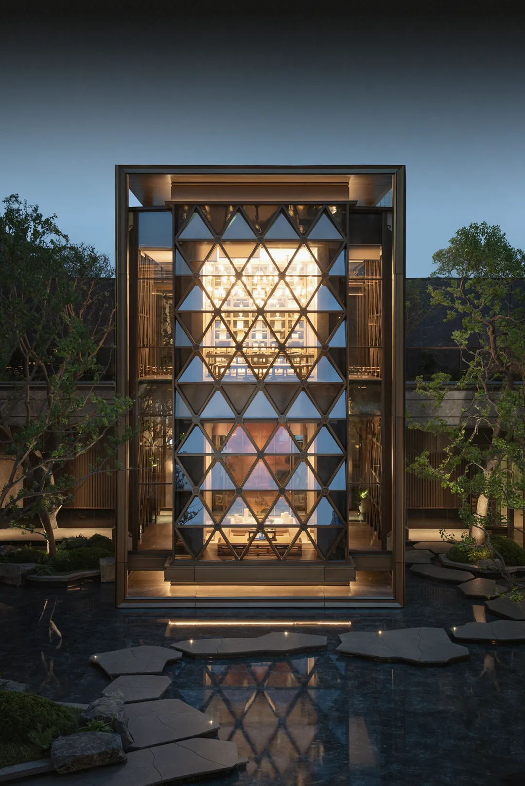 龙鳞祥云纹作为中国传统吉祥图案的代表,也被借鉴于首个景观庭院,寓意着美好生活。
