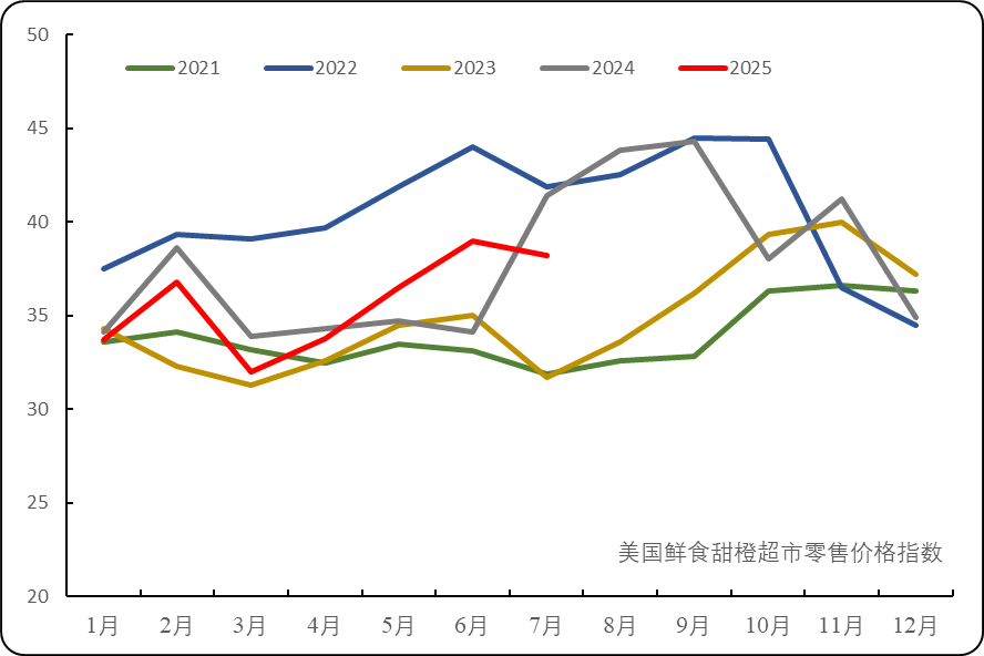 图1. 近五年美国鲜食甜橙超市零售价格指数走势图
