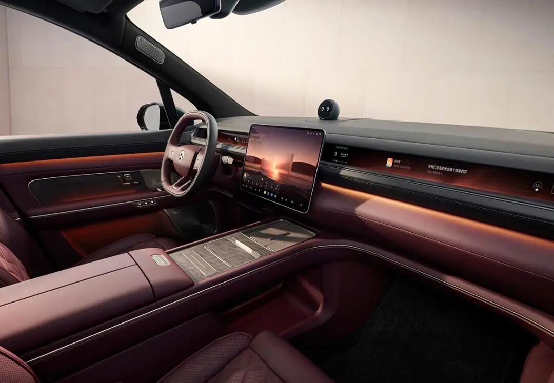 车内前排区域最大亮点是新车加入了ET9同款Skyline天际线屏幕,由48英寸miniLED数字天际空屏+15.6英寸AMOLED中控屏组成。还配备38英寸AR HUD平视显示系统,显示效果非常出色。车机内置SkyOS·天枢整车全域操作系统,配备NOMI Mate 3.0,支持6个独立音区,车外还有3处麦克风,可以在外部唤醒NOMI。