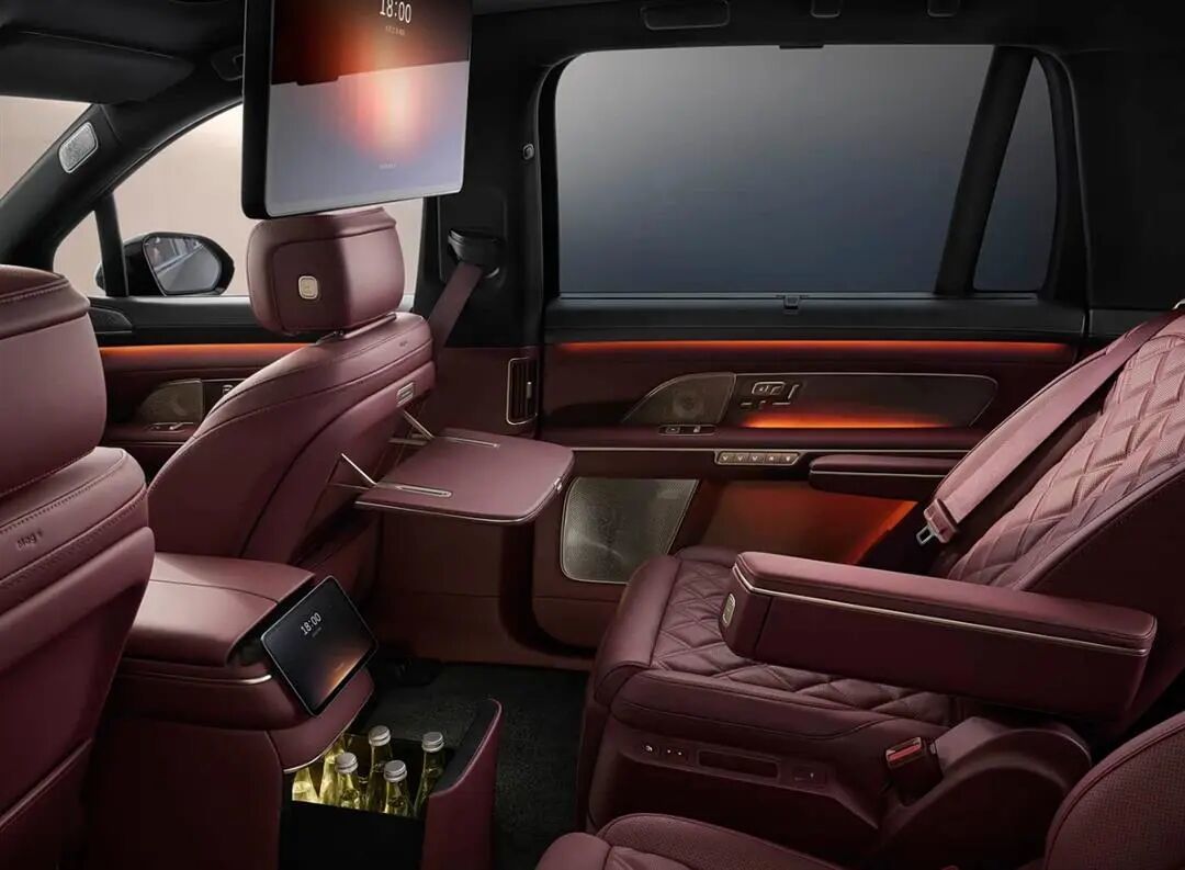 座舱配置方面,ES8首次引入后排娱乐屏和冷暖冰箱,说实话在上一代车型上就该这么干了,毕竟友商有,很多用户也在乎,ES8定位又这么高,这点是有些尴尬的。21.4英寸miniLED后排娱乐屏以及8.8L车载冰箱,算是弥补了遗憾,但不算是亮点。二、三排采用柔性电致变色智能隐私车窗,可分区控制,支持隐私模式、隔热模式、通透模式。