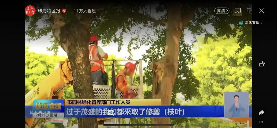这次台风来前几天,城管部门已提前对树木进行修剪加固,以排除隐患。