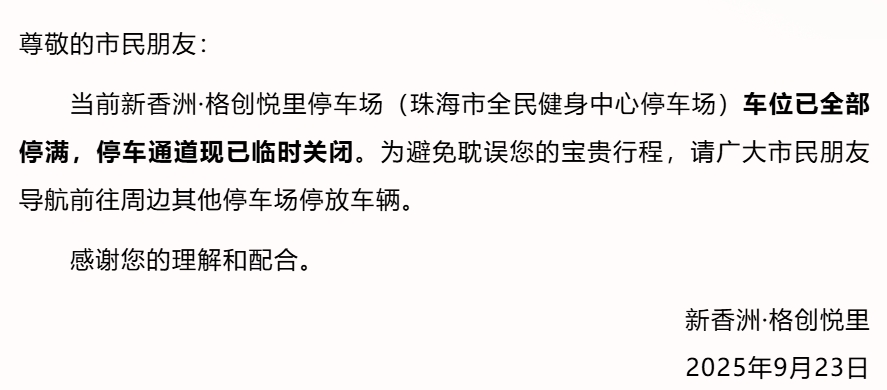 珠海全市开放多个停车场超20000个停车位,供市民免费临时使用。但是一些人口密集的商圈,停车位已经停满。大家出行需留意各大停车场通知!