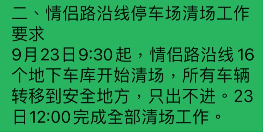 情侣路沿线16个车库需执行清场处理,具体安排如下: