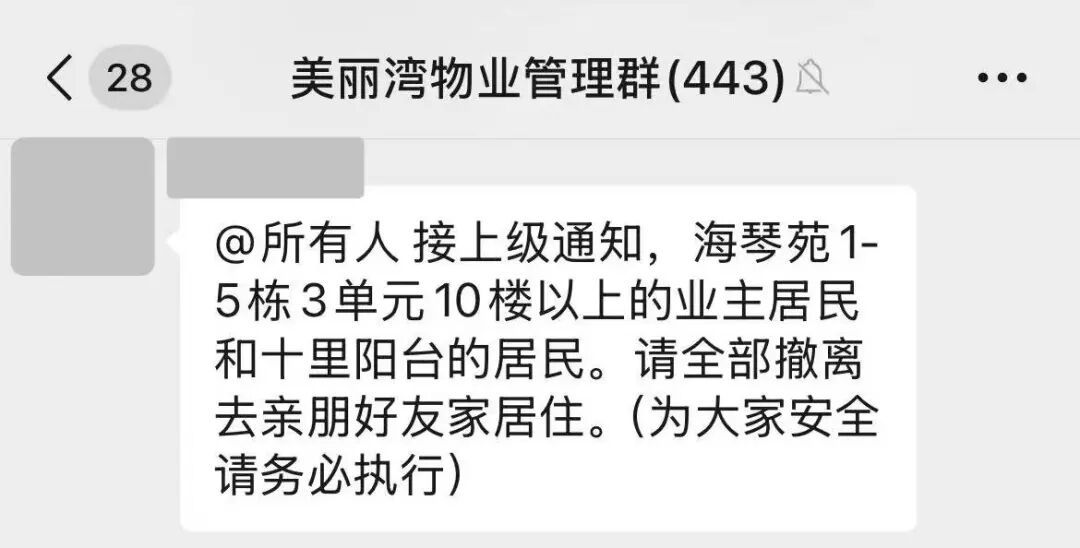 社区人员表示,联系以前天鸽以前出现过海水倒灌,叠加新月初一初二涨潮,因此强烈建议情侣路沿线高层住宅(10层以上)小区人员、包括海霞新村南北区等老旧小区人员撤离。