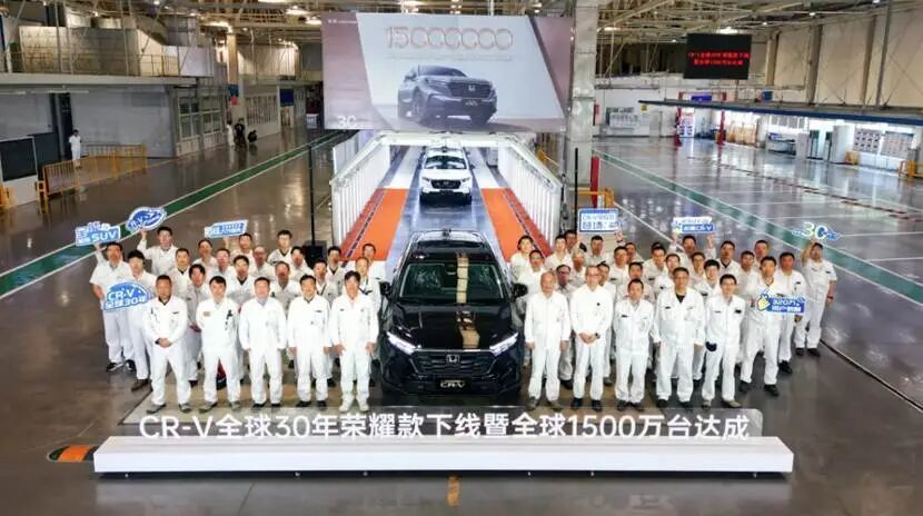 今年9月15日,CR-V全球累计销量突破1500万辆,CR-V全球30年荣耀款也于同日在东风本田第三工厂内缓缓驶下生产线。新车下线,不仅传承了CR-V的“全能基因”,也代表着面向未来的全新进化,在电动化与智能化浪潮中继续稳健前行。