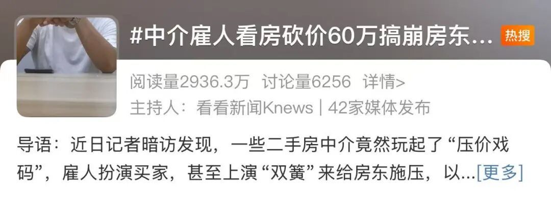 房地产专家也指出,中介“虚假带看、雇人砍价”的做法已经破坏了市场的秩序,消耗了房屋买卖双方的信任。