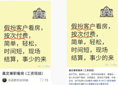 记者在社交平台上,看到不少帖子都在看房“演员”,记者和发帖人取得联系,发现对方都是房产中介的工作人员。