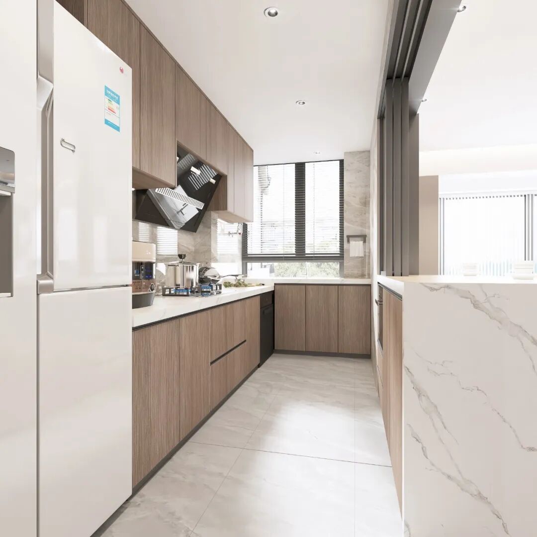 厨房是食物的加工场,冰箱是食物的储存地,将冰箱放进厨房,打造出“取→洗→切→炒”无缝衔接的黄金动线,无需来回奔波。对于热爱烹饪的人而言,这种流畅的设计能少走很多“冤枉路”,极大提升下厨的幸福感。