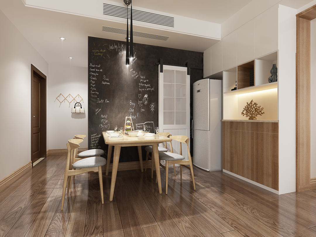 很多家庭的餐厅不大,要是再摆个冰箱,会显得特别拥挤。哪怕是嵌入到餐边柜,但冰箱的厚度一般超过60cm,往往会凸出在餐边柜外,显得非常突兀。