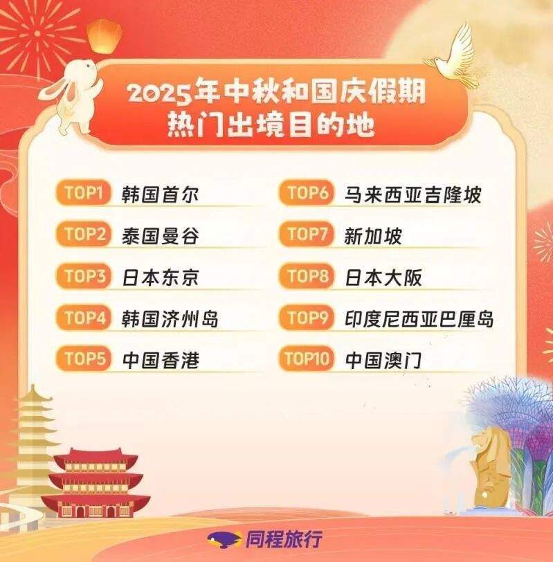 中秋国庆假期之际,免签政策对旅游市场的拉动效应持续释放。同程旅行数据显示,截至9月11日,假期国际机票搜索热度同比增长超60%,东亚与东南亚城市仍是出境主流,韩国在试行对中国团体游客免签后,赴韩机票热度显著上升,首尔、济州岛目的地搜索量同比增幅均超100%。