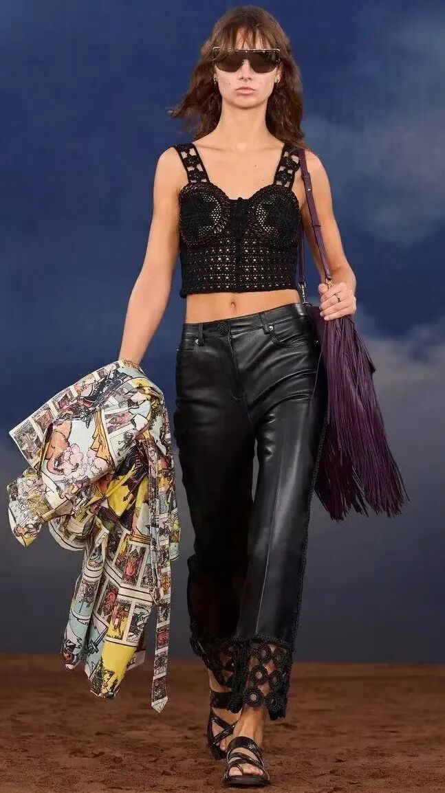 「上流社会」与「名利场」是这个系列的关键词。Demna为GUCCI打造的「上流社会」图景不是Loro Piana那种寂静无声的,而是烈火烹油的。正如GUCCI 2026早春系列那场前奏所预示(相关阅读:Demna还没入职,豪门恩怨味的GUCCI已就位),Demna从自己的亚文化族群中走出来,试图用怀旧情绪来理解和拥抱GUCCI保守主义的美学体系。也因此,我们看到Loro Piana的资产阶级风格是实用主义的,Demna的GUCCI则是一种「扮演」,这位喜欢打破传统、挑战常规的设计师在假装自己是资产阶级体系中的一员。