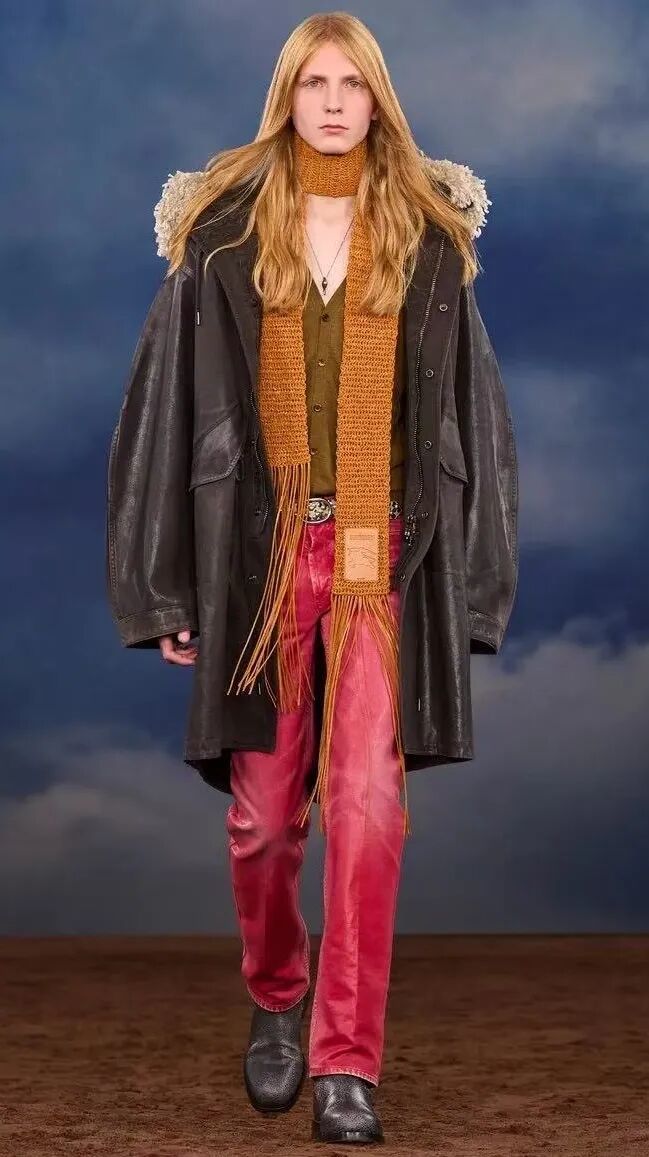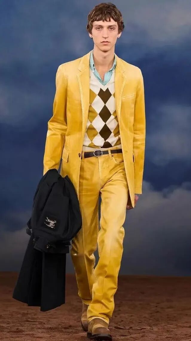 那么,Daniel Lee描绘的「音乐人着装」是什么样子呢?这些造型并不仅仅属于Mods青年,它们看起来像是对英伦摇滚黄金年代的荟萃,从1960年代摇摆伦敦(Swinging London)的Mods青年到1990年代的Brit Pop Style再到Y2K的Techno Boys。