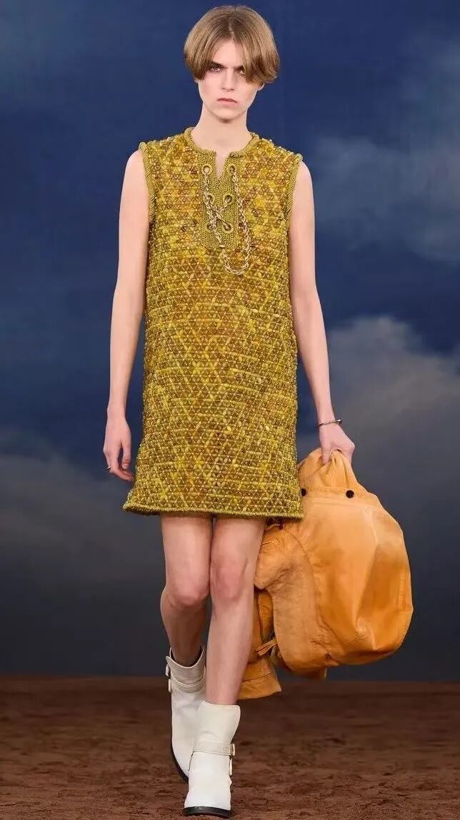 在这里我们可以看到Twiggy的迷你裙(Y2K时代的Kate Moss也这样穿),The Beatles式的修身西服、细领带与切尔西靴,The Who的M51外套;也可以看到The Pulp乐队风格的色彩碰撞、菱格纹针织衫,The Oasis乐队的条纹T恤、菱格纹针织衫,Pete Doherty的短夹克、窄围巾、细腿裤……经典到让人想起了Hedi Slimane的最爱。