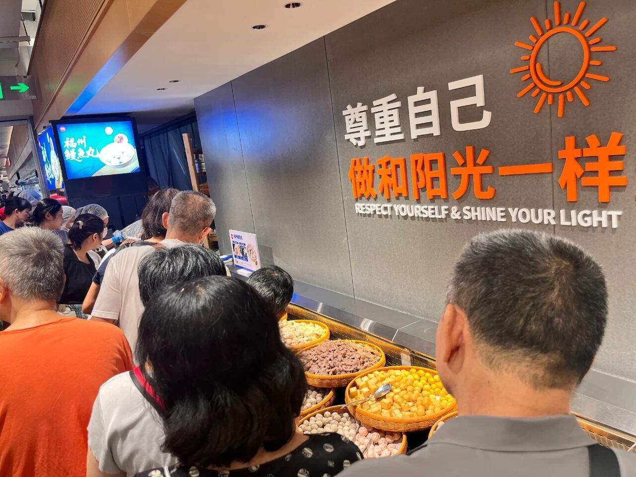 9月26日上午,记者在现场注意到,同样是本次引入的特色档口福州鳗鱼丸处挤满了等待给商品称重的顾客,开业两小时后,熟食区的新奥尔良烤鸡、烤鸡腿等多样产品已经售空。