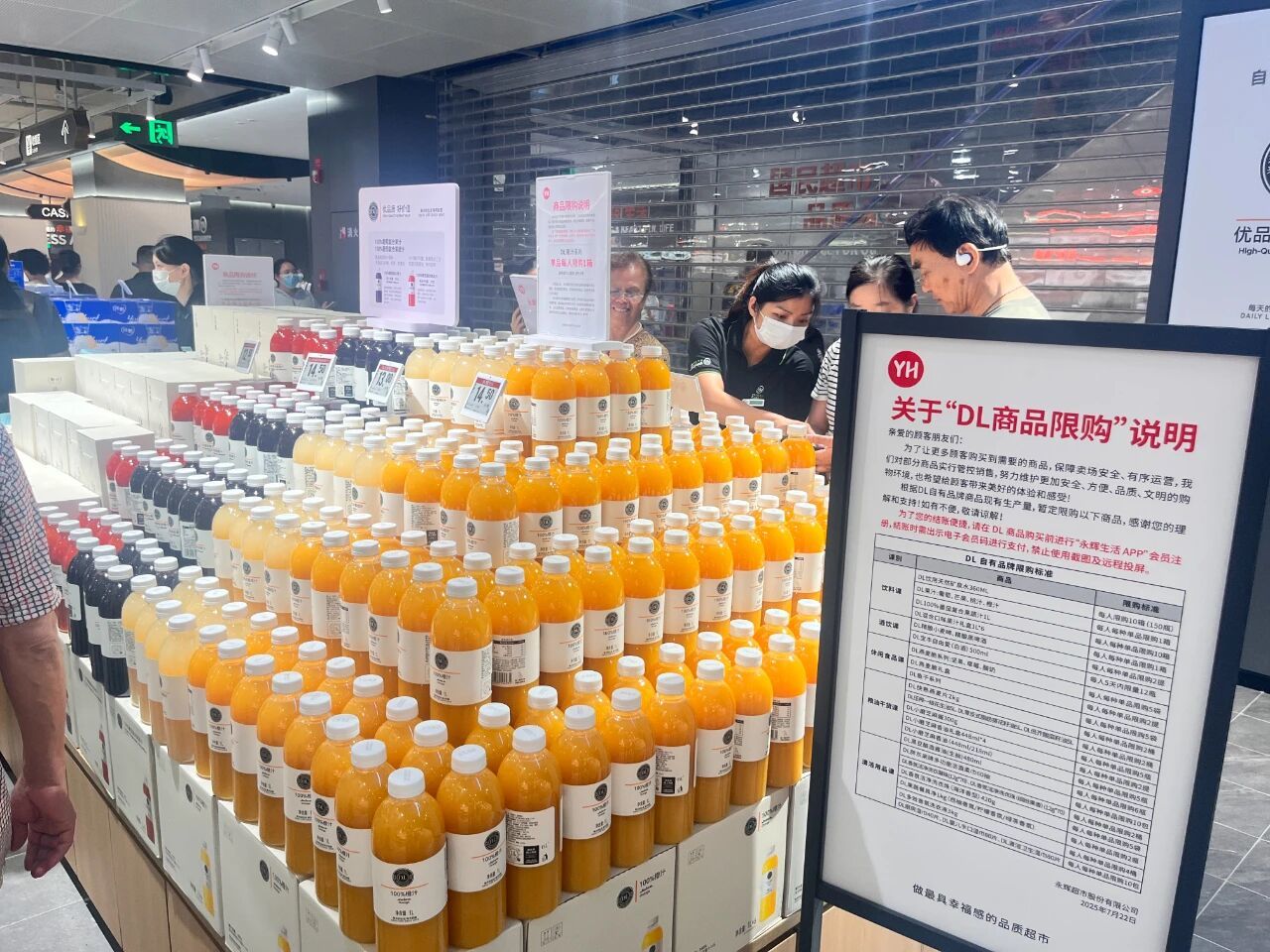 “目前我们引进的全是胖东来爆款产品,比如桃汁、橙汁、葡萄汁、番茄汁等,很多地方都断货了,目前店内的货是全国门店调货给我们才有的。”丽影广场店店长巫秋云告诉《消费者报道》记者,由于数量有限,门店目前也针对产品进行限购。
