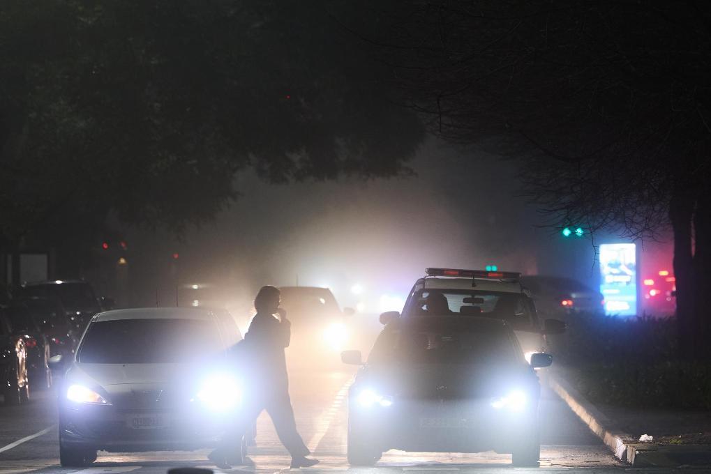 7月8日,一名女子走过浓雾中的阿根廷布宜诺斯艾利斯街头。新华社记者孟鼎博摄