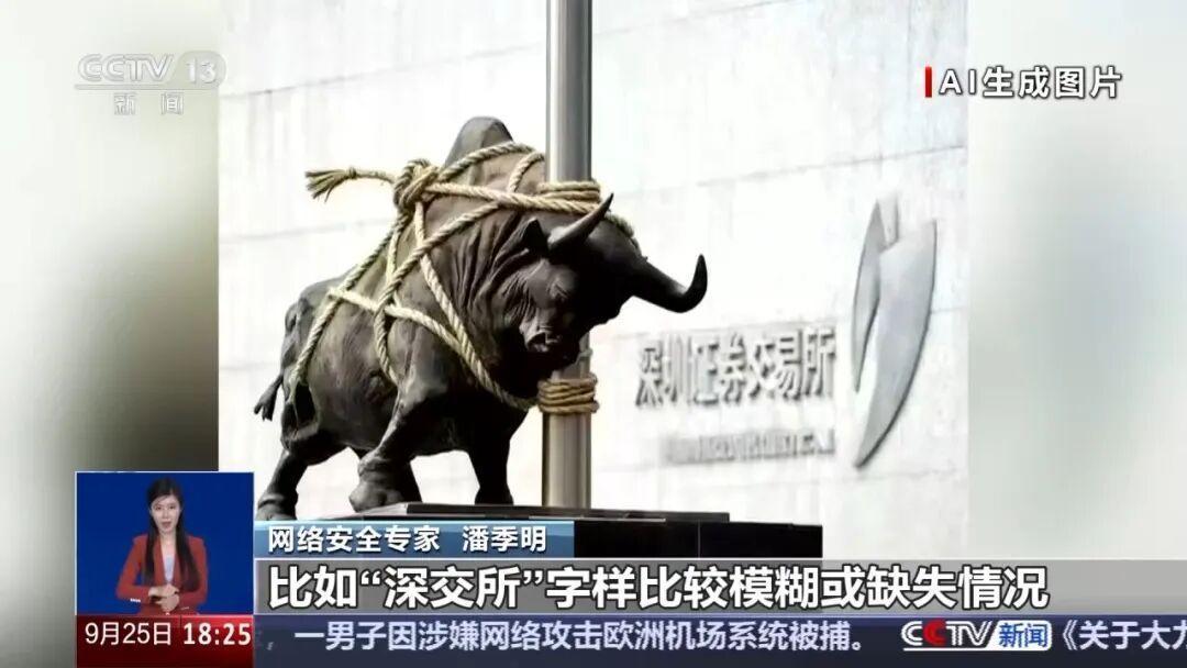 天融信科技集团网络安全专家 潘季明:尽管AI生成的图片越来越逼真,但仍可以通过一些技术痕迹识别,如图像的细节异常,包括光影不一致,光源方向和阴影长度不符合物理规律。AI生成的图片可能会出现纹理模糊或重复的现象,如水面、云层、树叶等区域出现油画感较重或重复纹理等现象,此外,还有类似文字错乱的情况,如下图中“深圳证券交易所”字样较模糊或缺失。