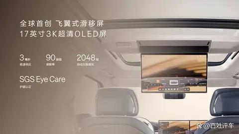除了顶级音响,极氪9X还带来全球首创的飞翼式滑移屏。这块17英寸3K超清OLED屏由三星供应,可在二三排间电动无级滑移88厘米,并支持5档角度调节,让全车乘员都能舒适使用。其低蓝光的护眼认证,也确保全家观看无忧。