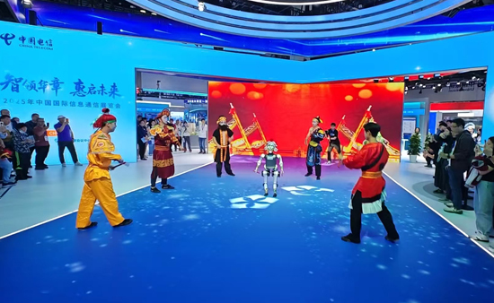 中国电信展台,一台具身智能机器人与人类舞者共同演绎了充满岭南特色的英歌舞。机器人动作精准,与人类配合默契。这背后是中国电信5G-A超低时延网络、云计算与边缘计算能力,保障了海量感知数据的传输与AI的实时决策控制。