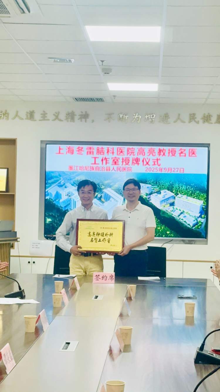 本次 “沪滇医疗支援‘疆海医线牵’” 还特别设置了“高亮名医工作室” 的授牌环节。据了解,名医工作室的建立将作为长效帮扶平台,通过远程会诊、教学查房、学术带教等形式,实现技术、管理和人才的深度“扎根”,真正帮助墨江医院实现“造血”功能。
