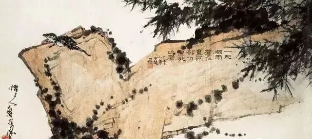 潘天寿 鹰石(指画)